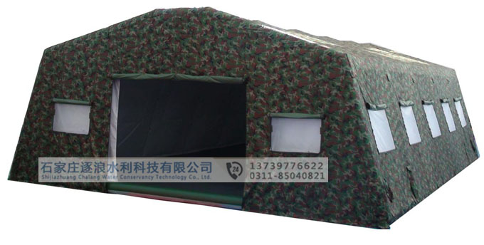 尺寸長11.25M,寬9.6M(108 m2),頂高4.14M,邊高1.8M 篷布外篷布,28×2/28×2滌綸迷彩防水帆布;保溫層,合纖針刺3mm厚;內篷布150D/150D平紋本色牛津布;阻燃地布。 支桿焊接薄壁型鋼管 包裝件數12件 重量645kg 用 途供野戰條件下指揮所使用。 主要特點結構簡單、合理、安全可靠;便于架設與撤收,不需任何輔助工具;圍護篷布設有保暖層和可開啟通風窗,冬季密閉、夏季通風,保溫隔熱性能好,可南北通用;篷內寬敞明亮,配有地布,可居性好;包裝形體規則,便于車載運輸,可人工裝卸及短途搬運。